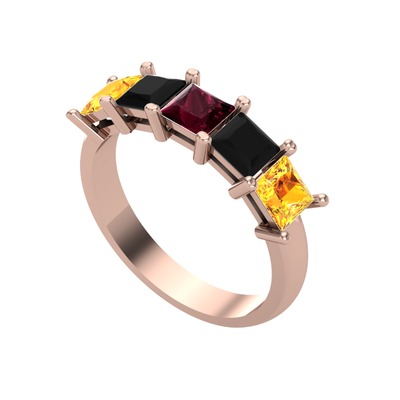 Kök yakut, siyah zirkon ve sitrin 925 ayar rose altın kaplama gümüş yüzük