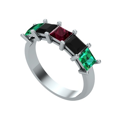 Kök yakut, siyah zirkon ve yeşil kuvars 18 ayar beyaz altın yüzük