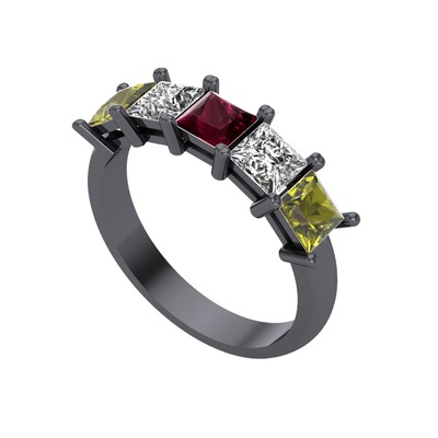 Kök yakut, swarovski ve peridot 925 ayar siyah rodyum kaplama gümüş yüzük