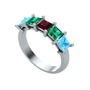 Kök yakut, yeşil kuvars ve akuamarin 8 ayar beyaz altın yüzük