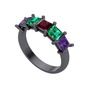 Kök yakut, yeşil kuvars ve ametist 925 ayar siyah rodyum kaplama gümüş yüzük