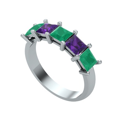 Kök zümrüt ve ametist 925 ayar gümüş yüzük