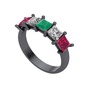 Kök zümrüt, beyaz zirkon ve rodolit garnet 925 ayar siyah rodyum kaplama gümüş yüzük