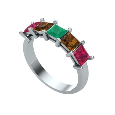 Kök zümrüt, dumanlı kuvars ve rodolit garnet 925 ayar gümüş yüzük