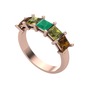 Kök zümrüt, peridot ve dumanlı kuvars 925 ayar rose altın kaplama gümüş yüzük