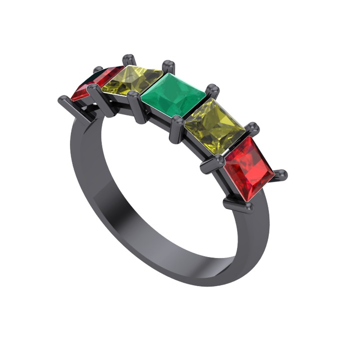 Kök zümrüt, peridot ve garnet 925 ayar siyah rodyum kaplama gümüş yüzük
