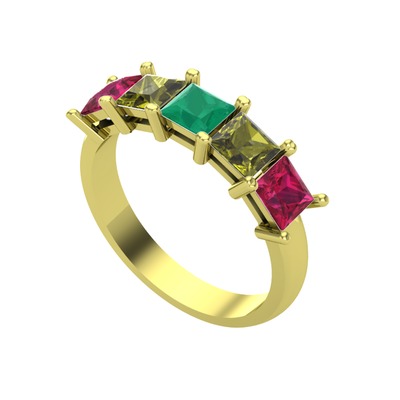 Kök zümrüt, peridot ve rodolit garnet 925 ayar altın kaplama gümüş yüzük