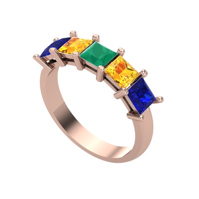 Kök zümrüt, sitrin ve lab safir 14 ayar rose altın yüzük