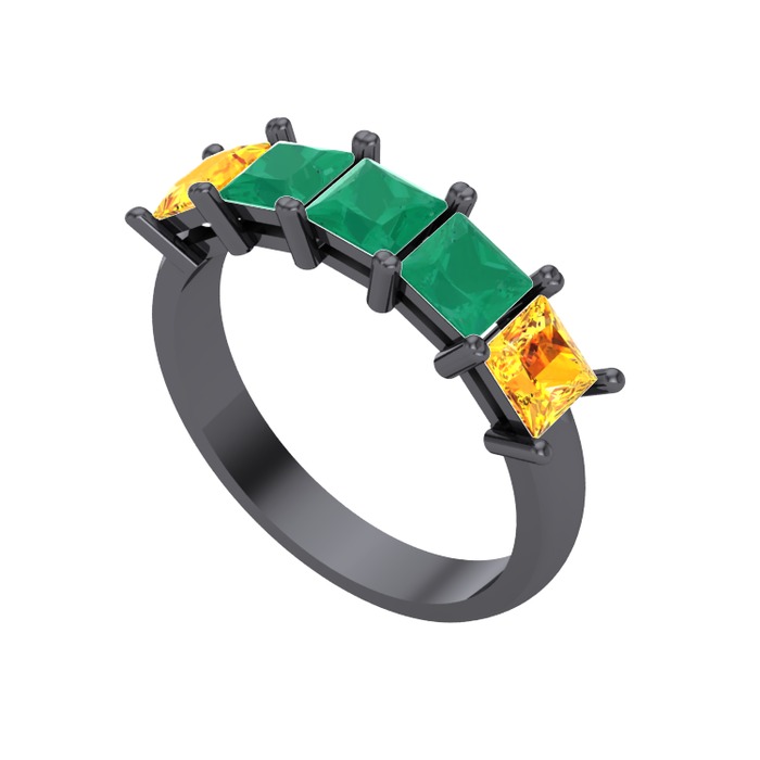 Kök zümrüt ve sitrin 925 ayar siyah rodyum kaplama gümüş yüzük