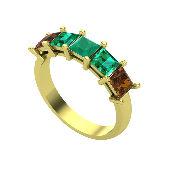 Kök zümrüt, yeşil kuvars ve dumanlı kuvars 8 ayar altın yüzük