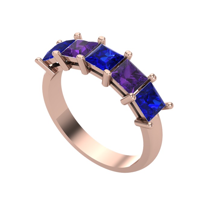 Lab safir ve ametist 925 ayar rose altın kaplama gümüş yüzük