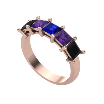 Lab safir, ametist ve siyah zirkon 925 ayar rose altın kaplama gümüş yüzük