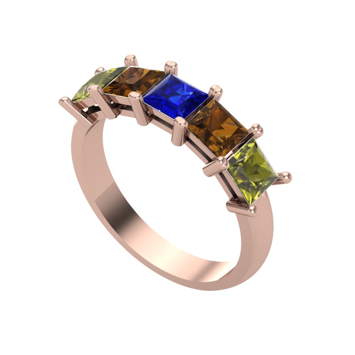 Lab safir, dumanlı kuvars ve peridot 18 ayar rose altın yüzük