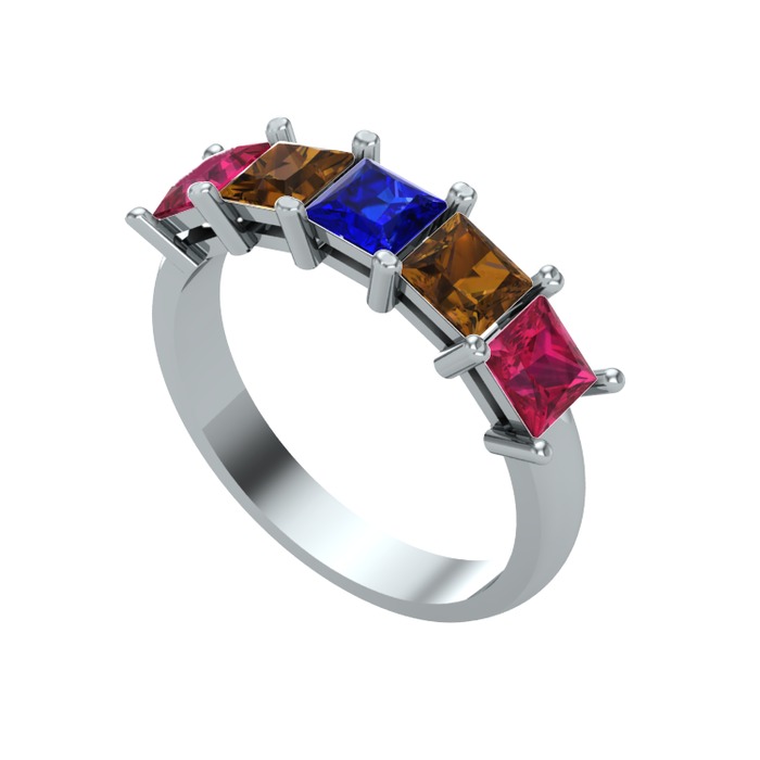 Lab safir, dumanlı kuvars ve rodolit garnet 925 ayar gümüş yüzük