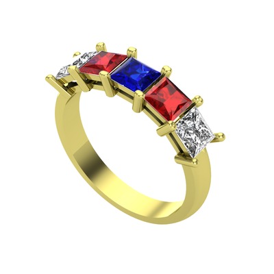 Lab safir, garnet ve swarovski 8 ayar altın yüzük