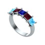 Lab safir, kök yakut ve akuamarin 18 ayar beyaz altın yüzük