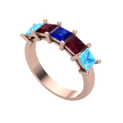 Lab safir, kök yakut ve akuamarin 925 ayar rose altın kaplama gümüş yüzük