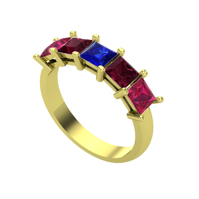 Lab safir, kök yakut ve rodolit garnet 8 ayar altın yüzük