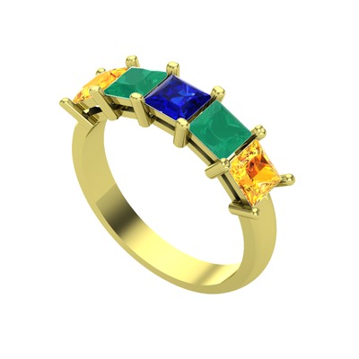 Lab safir, kök zümrüt ve sitrin 14 ayar altın yüzük