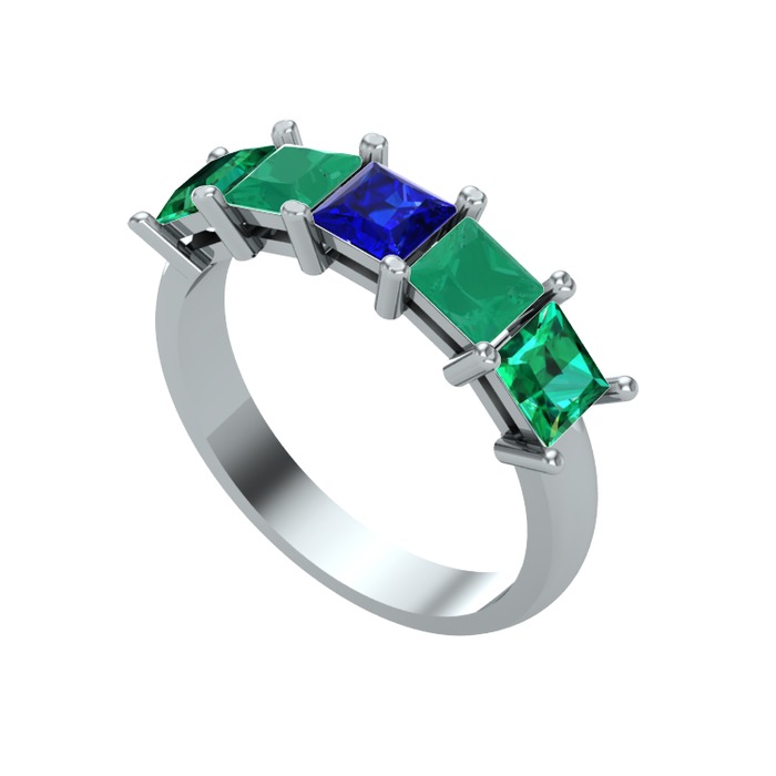 Lab safir, kök zümrüt ve yeşil kuvars 14 ayar beyaz altın yüzük