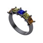 Lab safir, peridot ve dumanlı kuvars 925 ayar siyah rodyum kaplama gümüş yüzük