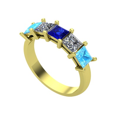 Lab safir, pırlanta ve akuamarin 18 ayar altın yüzük (0.78 karat)