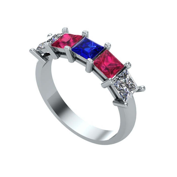 Lab safir, rodolit garnet ve pırlanta 18 ayar beyaz altın yüzük (0.78 karat)