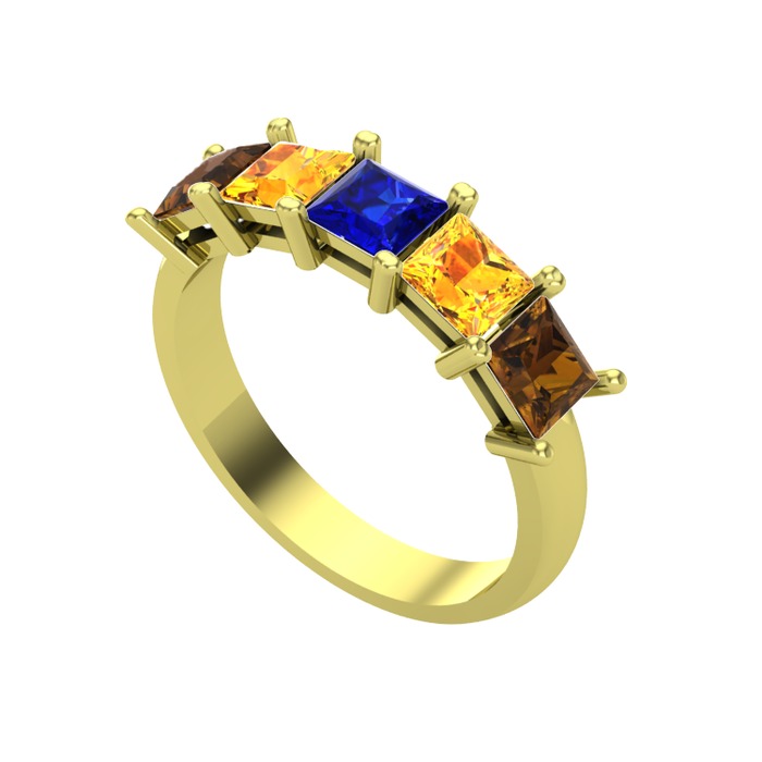 Lab safir, sitrin ve dumanlı kuvars 8 ayar altın yüzük