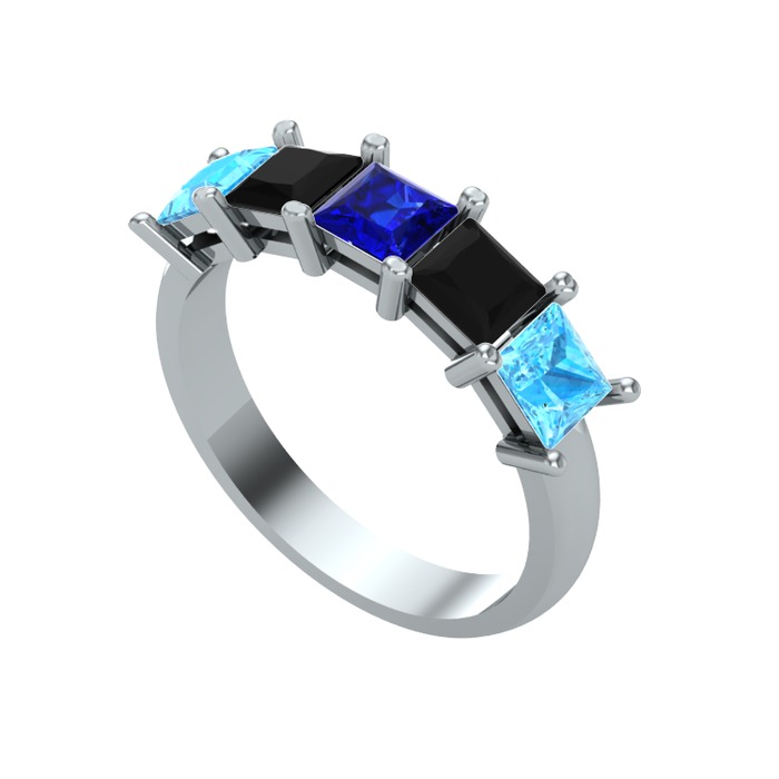Lab safir, siyah zirkon ve akuamarin 14 ayar beyaz altın yüzük