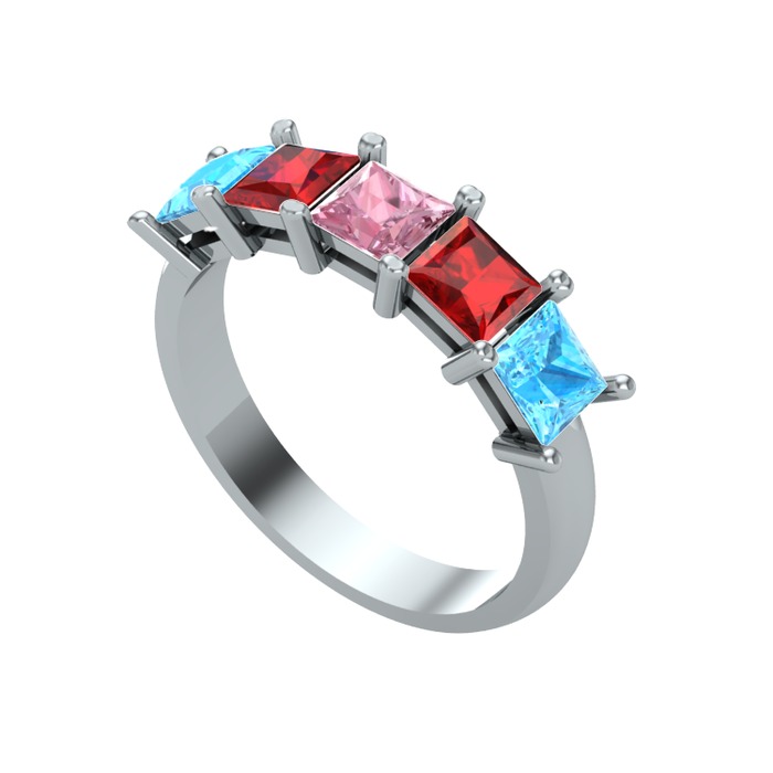 Pembe kuvars, garnet ve akuamarin 18 ayar beyaz altın yüzük