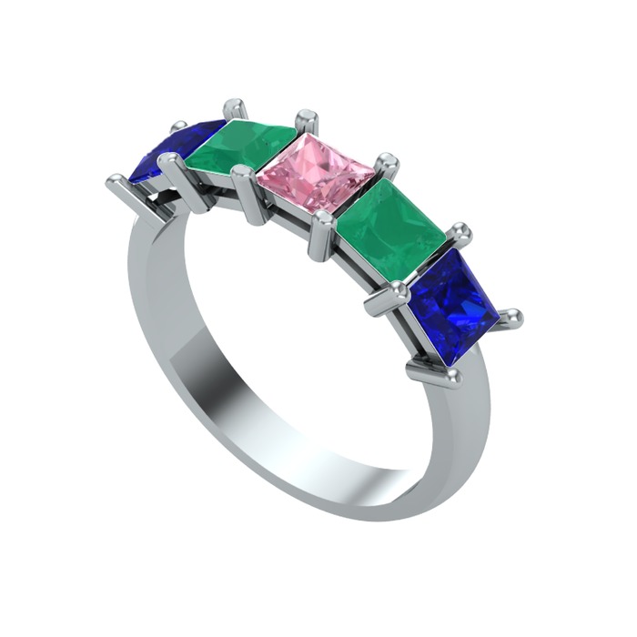 Pembe kuvars, kök zümrüt ve lab safir 925 ayar gümüş yüzük