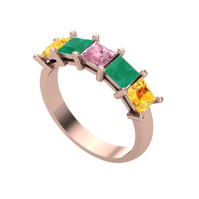 Pembe kuvars, kök zümrüt ve sitrin 925 ayar rose altın kaplama gümüş yüzük