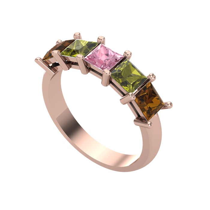 Pembe kuvars, peridot ve dumanlı kuvars 8 ayar rose altın yüzük