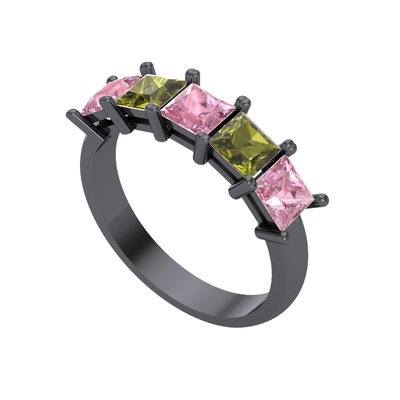 Pembe kuvars ve peridot 925 ayar siyah rodyum kaplama gümüş yüzük