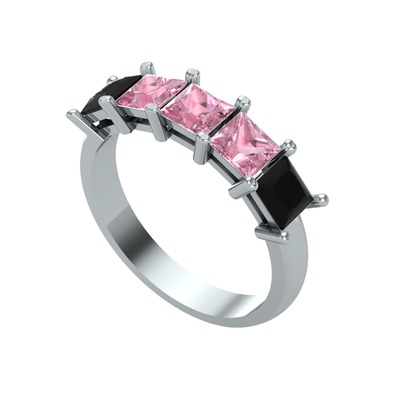Pembe kuvars ve siyah zirkon 8 ayar beyaz altın yüzük