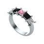 Pembe kuvars, siyah zirkon ve beyaz zirkon 8 ayar beyaz altın yüzük