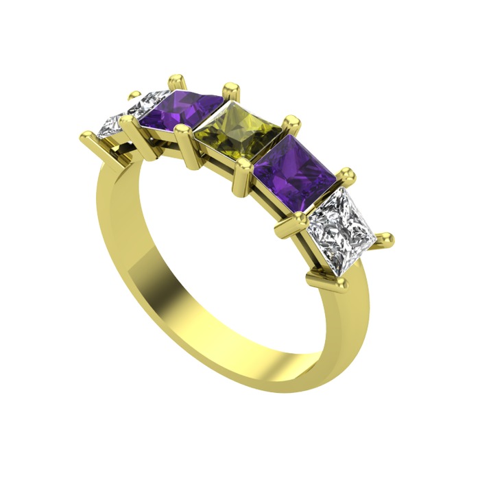 Peridot, ametist ve swarovski 8 ayar altın yüzük