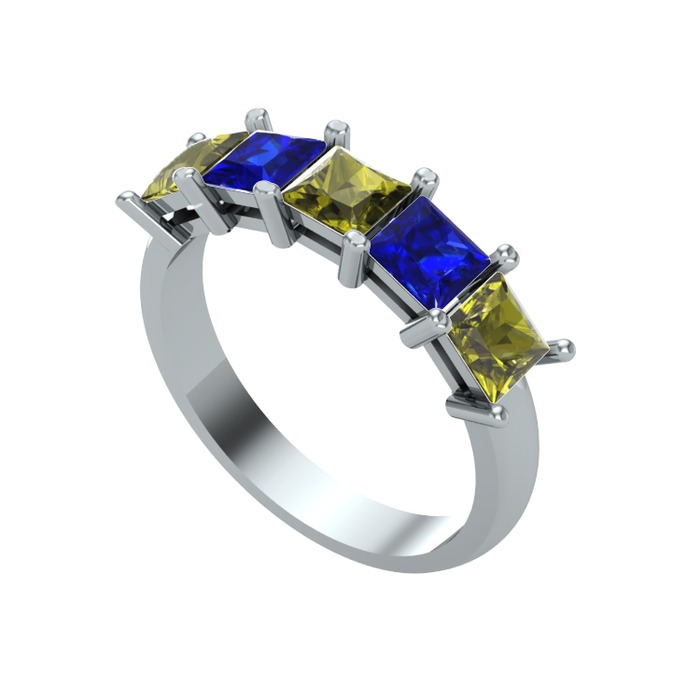 Peridot ve lab safir 18 ayar beyaz altın yüzük