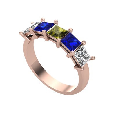 Peridot, lab safir ve beyaz zirkon 925 ayar rose altın kaplama gümüş yüzük