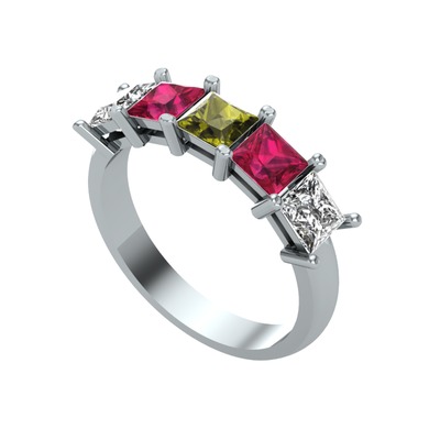 Peridot, rodolit garnet ve beyaz zirkon 18 ayar beyaz altın yüzük