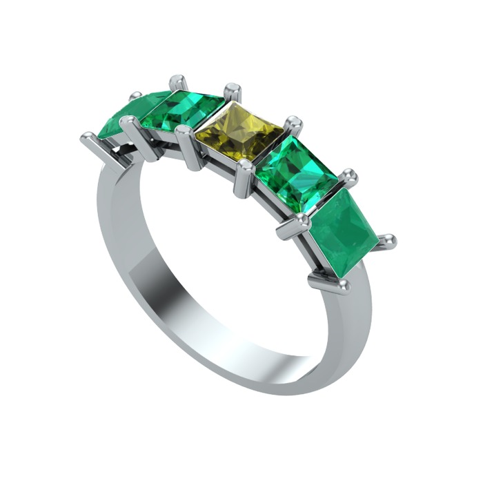 Peridot, yeşil kuvars ve kök zümrüt 8 ayar beyaz altın yüzük