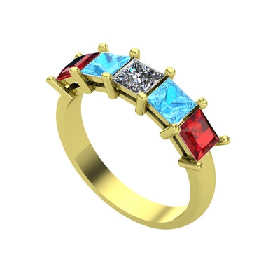 Pırlanta, akuamarin ve garnet 14 ayar altın yüzük (0.39 karat)