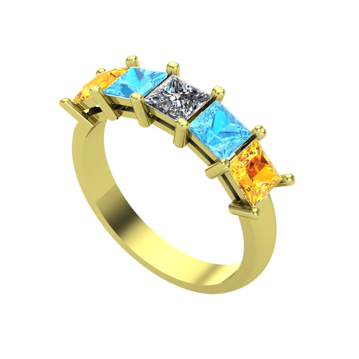 Pırlanta, akuamarin ve sitrin 925 ayar altın kaplama gümüş yüzük (0.39 karat)