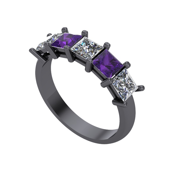 Pırlanta ve ametist 925 ayar siyah rodyum kaplama gümüş yüzük (1.17 karat)