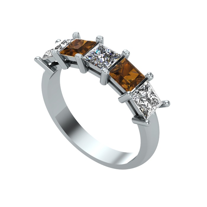 Pırlanta, dumanlı kuvars ve beyaz zirkon 8 ayar beyaz altın yüzük (0.39 karat)