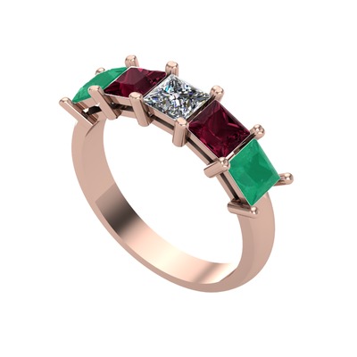 Pırlanta, kök yakut ve kök zümrüt 18 ayar rose altın yüzük (0.39 karat)