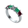 Pırlanta, kök zümrüt ve kök yakut 18 ayar beyaz altın yüzük (0.39 karat)
