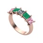 Pırlanta, kök zümrüt ve pembe kuvars 925 ayar rose altın kaplama gümüş yüzük (0.39 karat)