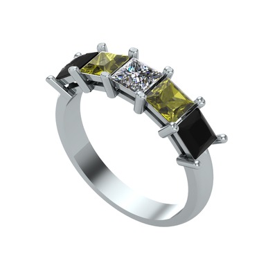 Pırlanta, peridot ve siyah zirkon 8 ayar beyaz altın yüzük (0.39 karat)