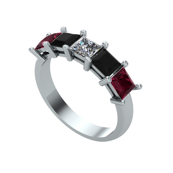 Pırlanta, siyah zirkon ve kök yakut 925 ayar gümüş yüzük (0.39 karat)